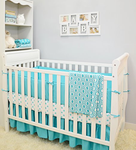 - American Baby Company 100% Cotton Percale Fitted Crib Sheet, White with Aqua Dot