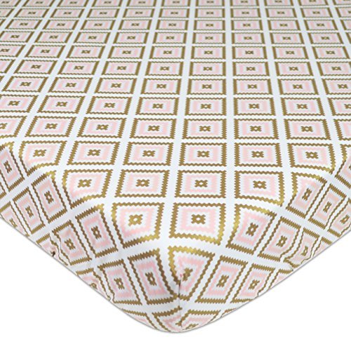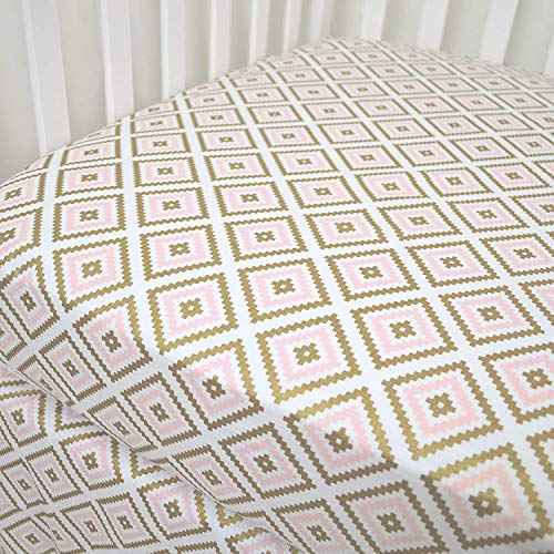 American Baby Company 100% Cotton Percale Fitted Crib Sheet for Standard Crib and Toddler Mattresses Sparkle Gold/Pink Kilim [並行輸入品]