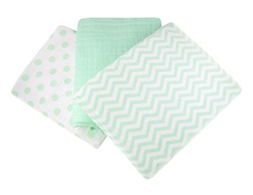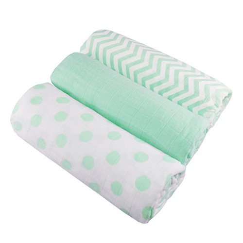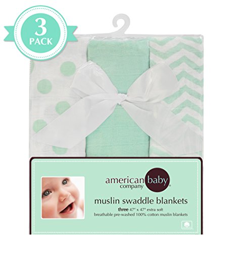 American Baby Company 100% Cotton Muslin Swaddle Blankets, Mint (47 x 47), 3 Count