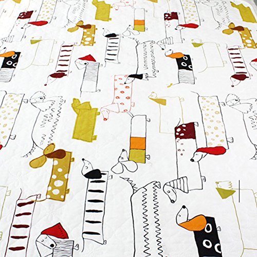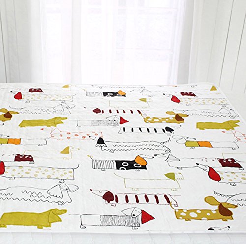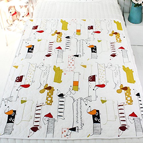 ハニー・ベッディング(Honey Bedding)幼児用 キルティング マットレス保護パッド 防水 可愛いデザイン 74x108cm 超音波法 (イラストの子犬)