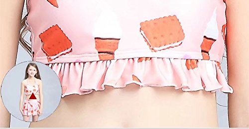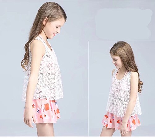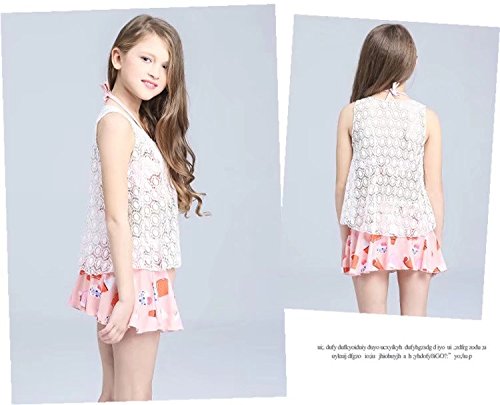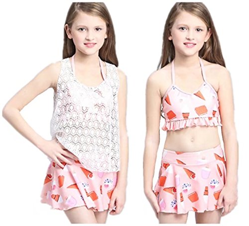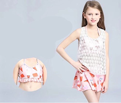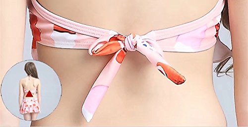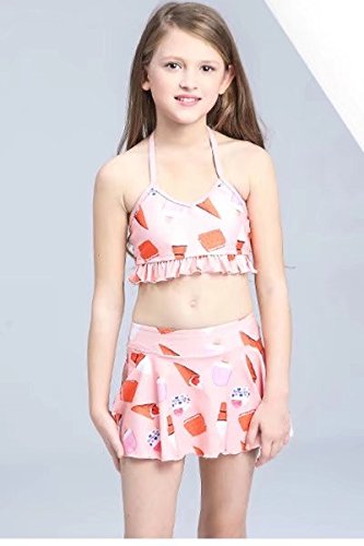 AMIGOYO 水着 女の子 ビキニ 3点セット 子供 こども 女児 幼児 スイムウェア かわいい キッズ ジュニア 身長120 130 140 150kids ベビー ガールズ リボン スカート ホルターネック バンドゥー (ピンク、XL)