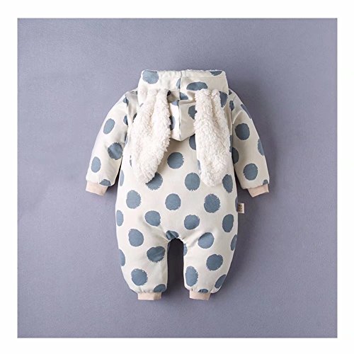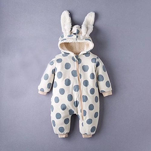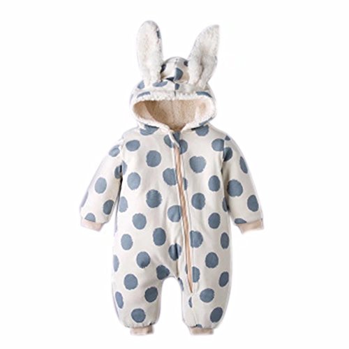 AMIGOYO ベビー 服 ロンパース ジャンプスーツ 冬 裏起毛 綿服 フード付き 前開き カバーオール 男女兼用 厚手 耳付き ふわふわ 可愛い