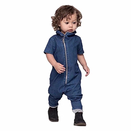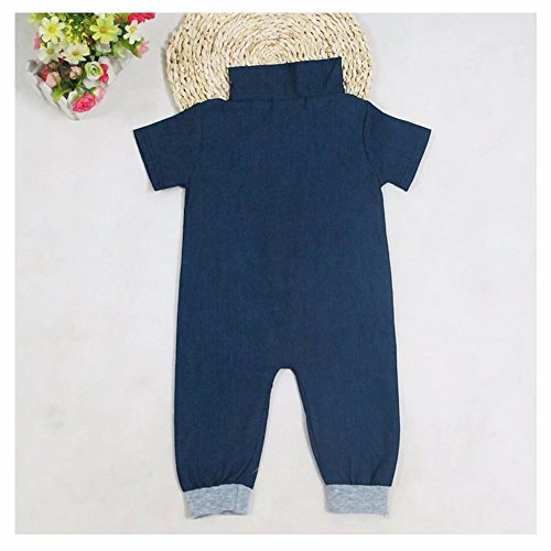 AMIGOYO ベビー 子供服 ロンパース デニム 男の子 半袖 カバーオール 柔らかい 出産祝い 夏 キッズ ボーイズ