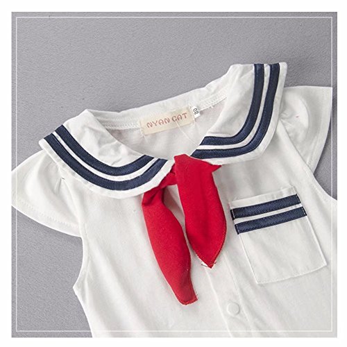 AMIGOYO ベビー 子供服 ロンパース ネイビー 女の子 半袖 カバーオール スカート付き 柔らかい 出産祝い 夏 キッズ ガールズ