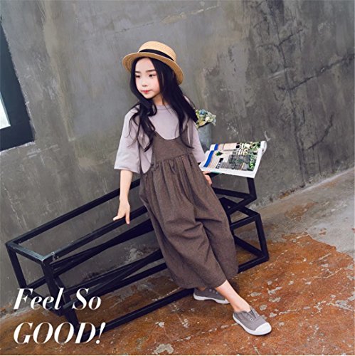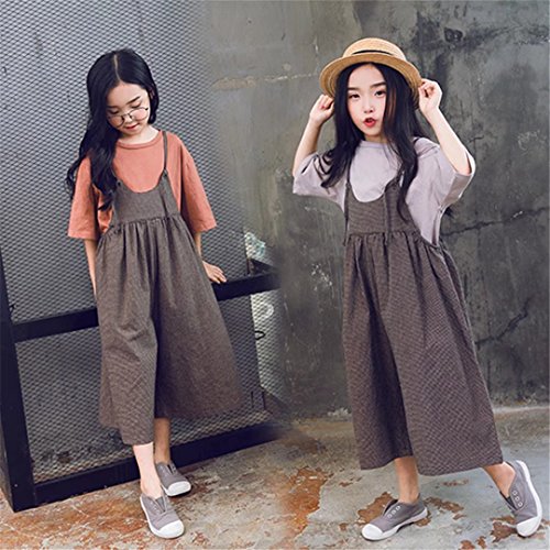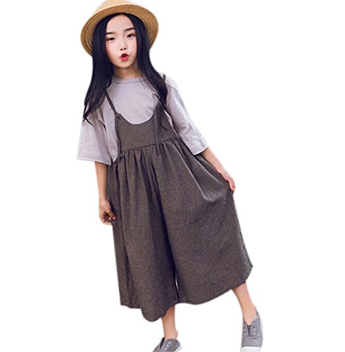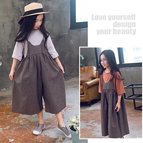 AMIGOYO 子供 サロペット 女の子 オーバーオール ロンパース オールインワン キッズ ワイドパンツ ガウチョパンツ 7分丈 サスペンダー