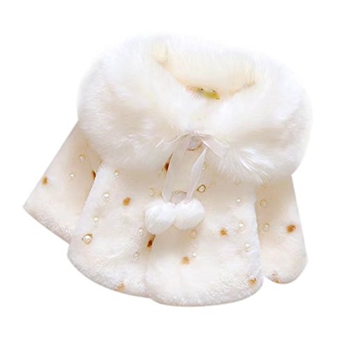 AMIGOYO ベビー服 コート 赤ちゃん ジャケット マント ボレロ フォーマル ボンボン付き ふわふわ ファー ストール マントお姫様 キュート 厚手 秋冬 クリスマス お正月 結婚式