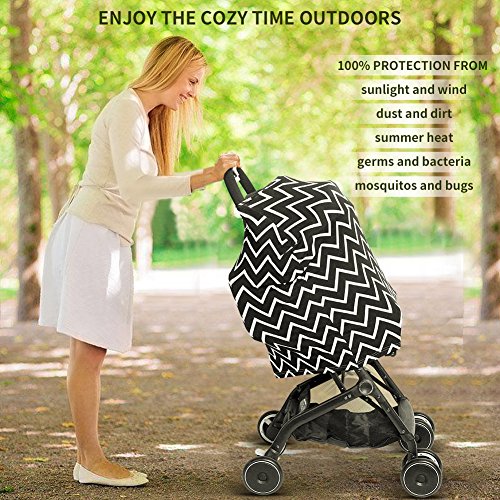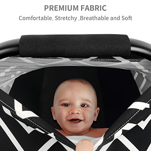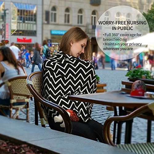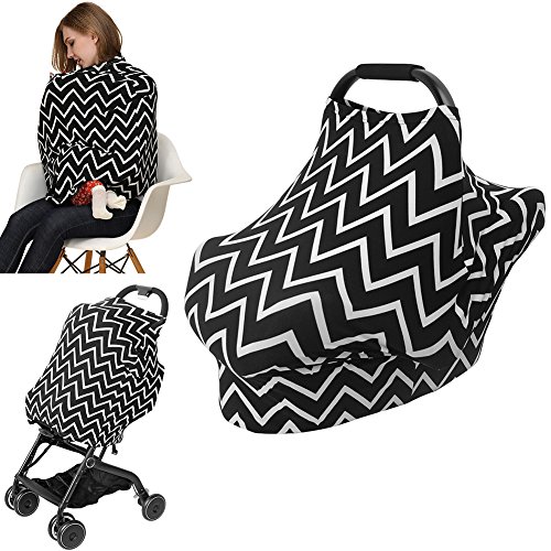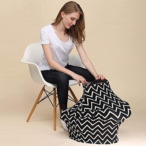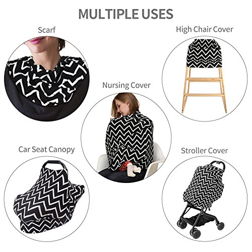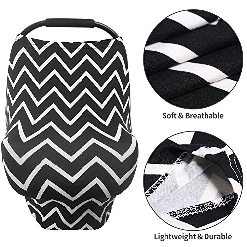 Amiu 多機能 母乳育児用タオル マルチユースママ母乳カバー、ベビーカーシートカバーキャノピー、ベビーバスタオル看護用スカーフ、ガールズ&ボーイズ用軽量伸縮ショール (ブラック)