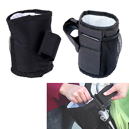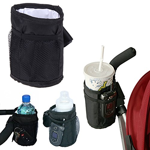 Amiu ベビーカー マグカップホルダーバッグ ボトルホルダーブラック 哺乳瓶 取り付けは簡単(防水)
