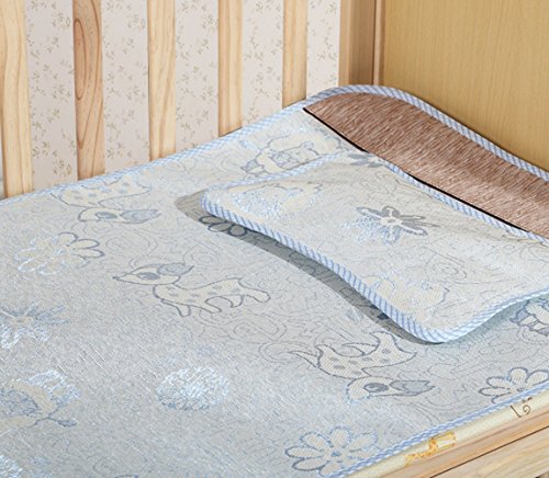 ベビーベッド用 アイスシルク ベビーマット ラグ 枕 暑さ対策 折りたたみ 滑り止め 通気 夏用 二点セット (ブルー)