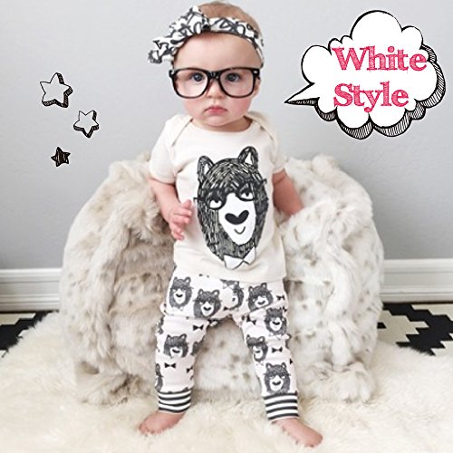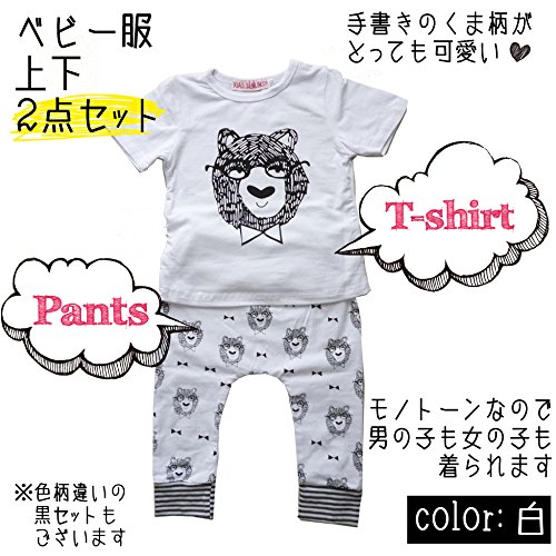 - かわいい デザイン Tシャツ と パンツ。白は存在感あるクマのプリント。上下セットで着るのはもちろん、別々で着てもお手持ちのお洋服と合わせて オシャレ に着こなせます。