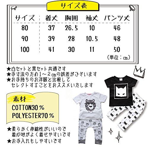 Amore mare(アモーレマーレ)ベビ- キッズ 半袖 Tシャツ & パンツ レギンス 上下 2点セット 男の子 女の子 白 黒 n005(白80)