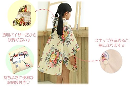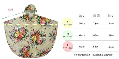 Amore mare(アモーレマーレ)ベビー キッズ 子供用 花柄 レインコート ポンチョ リュック対応 透明バイザー 付き n003 (M 95-110)