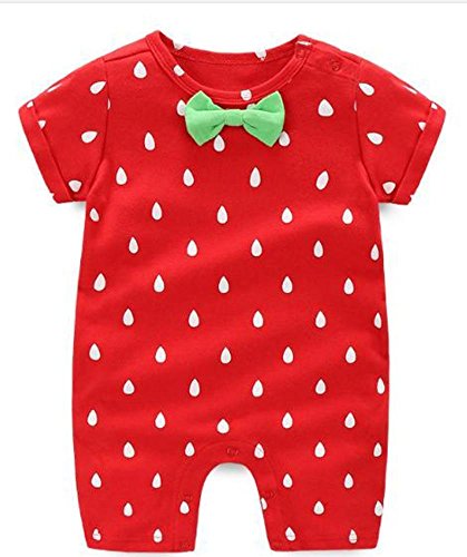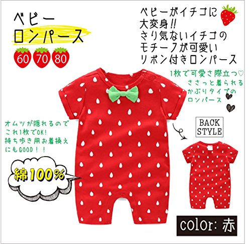- ベビー服 ひげ いちご 柄 が かわいい かっこいい 半袖 ロンパース カバーオール 男の子 女の子 兼用で着れます。