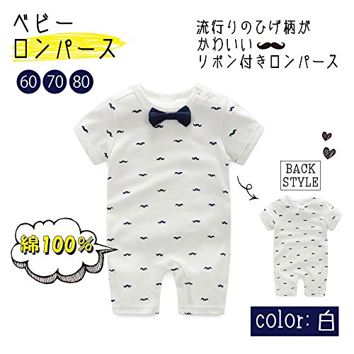 Amore mare(アモーレマーレ)ベビ- キッズ 春夏 ロンパース カバーオール ネクタイ リボン 男の子 女の子 半袖 インナー 白 60 n004