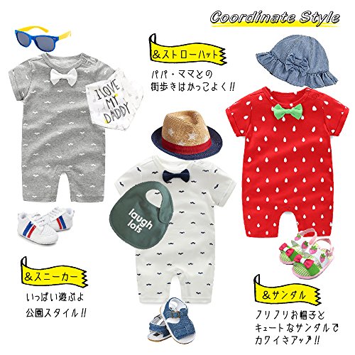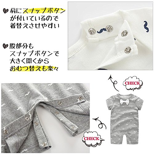 - ベビー服 ひげ いちご 柄 が かわいい かっこいい 半袖 ロンパース カバーオール 男の子 女の子 兼用で着れます。