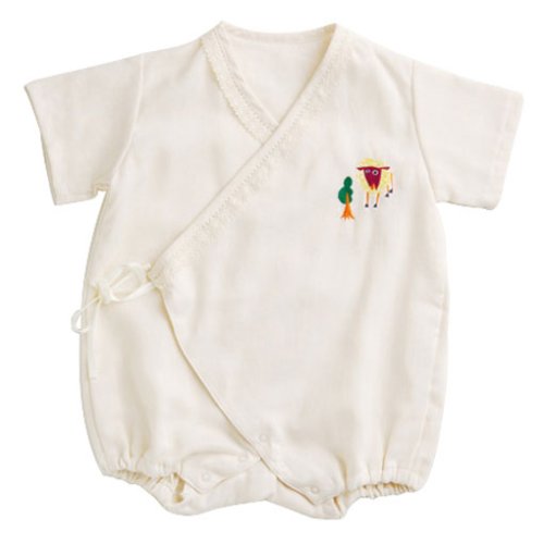 天然材質100%はもちろん、デザイン、刺繍にもこだわった究極のオーガニックアイテム。拡げて赤ちゃんをくるむように着せるだけ!ホック付きでおむつ替えもラク。