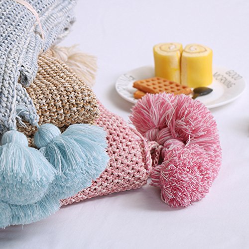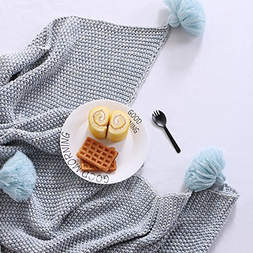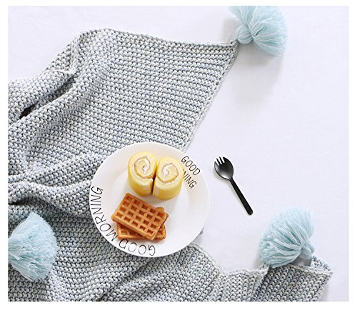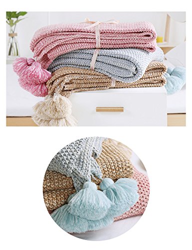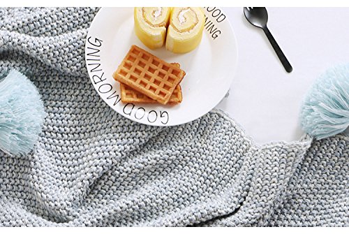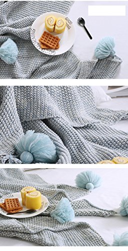 Amorus 最新スタイル 北欧風 ブランケット 毛布 ニット コットン 多機能レジャー毛布 ふわふわな肌触り 写真道具 昼休みカバー ソファー用 ベッド用 オフィス用 春夏秋冬に対応 ふわふわ 可愛い 柔らかい 暖かい 130x170cm (ブルー)