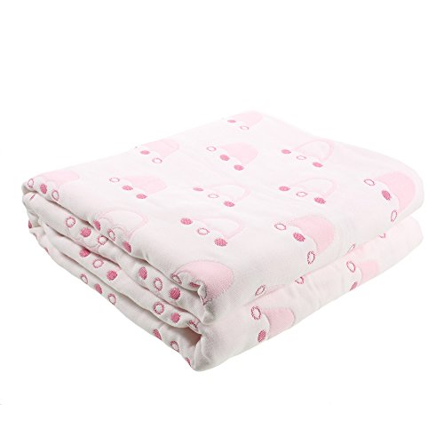 Amorus 肌にやさしい 子供 毛布 ベビーブランケット 大判 ひざ掛け ガーゼケット ベビーケット オーガニックコットン ベビーケット 湯上りタオル ふわふわガーゼタオル 子供バスタオル キッズ用ブランケット 毛布 通気性が良い 110×110cm (ピンク)