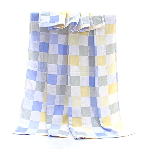 Amorus 肌にやさしい 子供 毛布 ベビーブランケット 大判 ひざ掛け ガーゼタオル 子供バスタオル ベビーケット 湯上りタオル ふわふわ タオル 赤ちゃん 格子図案 (ブルー)