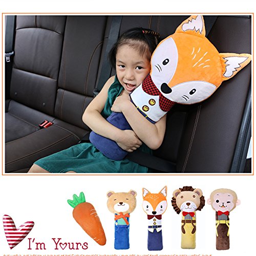 Amorus 子供 シートベルト カバー 枕 クッション パッド 車 首 まくら 安全 グッズ 車内泊 車中泊 旅行 睡眠 ぬいぐるみ 動物型 可愛い (キツネ)