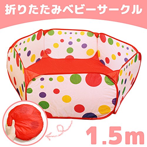 水玉 ベビーサークル ボールプール 折りたたみ式コンパクトサイズ 収納袋付き (1.5m)