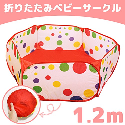 水玉 ベビーサークル ボールプール 折りたたみ式コンパクトサイズ 収納袋付き (1.2m)