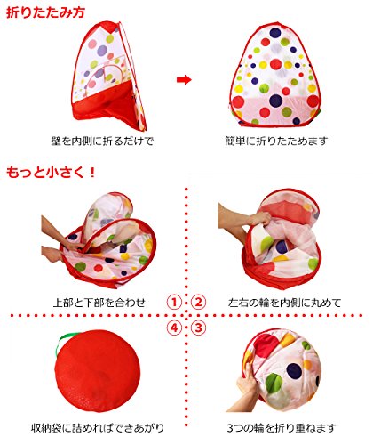 水玉 キッズテント ボールハウス 折りたたみ式コンパクトサイズ 収納袋付き 1人用 Sサイズ