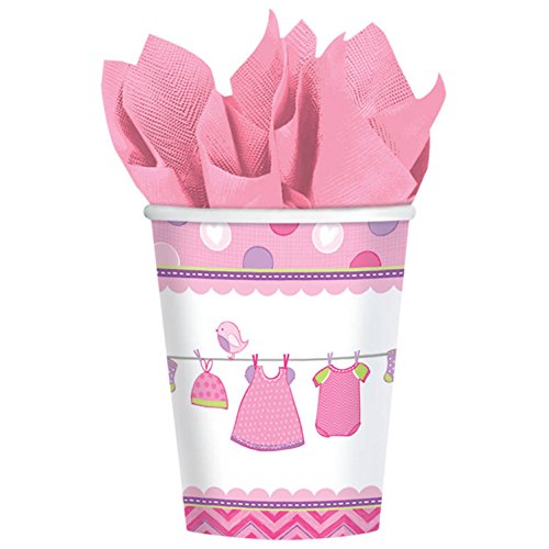 Amscan Delightful Shower with Love Girl Cups Baby Shower Party Supplies, 9 oz, Pink/White/Purple