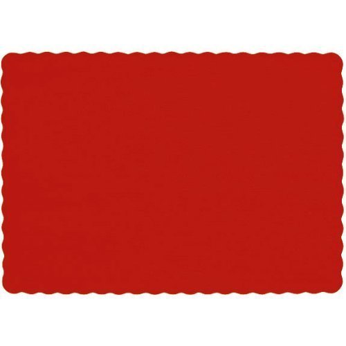 Our Apple Red Paper Placemats will protect your table and make it look great! These solid color paper placemats feature a decorative scalloped border. Mix and match with other prints and colors. Measures 10" x 14". 50 per package.