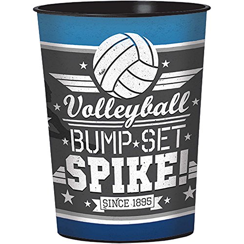 バレーボールCOOLの食のに役立ちプラスチック支持カップまた素晴らしいパーティーフェイバー各カップ機能青と黒板背景のメッセージが表示されます。"バンプセットスパイク」Holds 16 oz。、1カップあたりパッケージを参照してください。