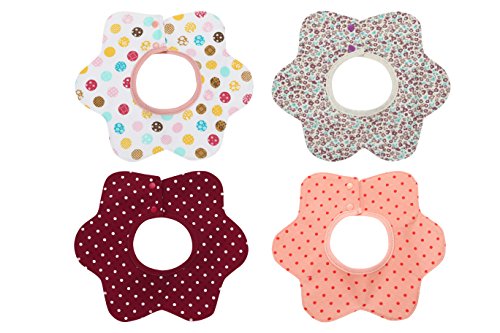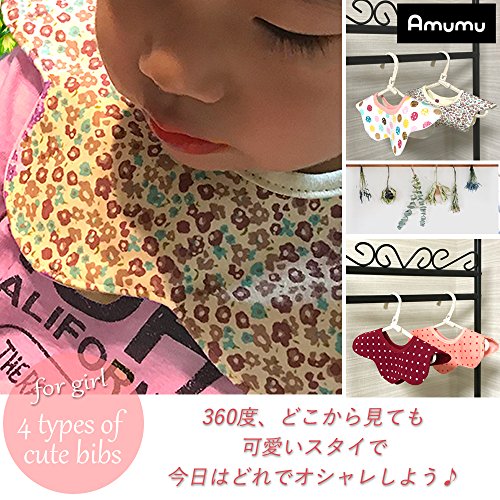 Amumu スタイ 女の子 360℃回転 4枚セット よだれかけ ビブ 2層タイプ 綿100% フラワーシェイプ ベビー (柄物)