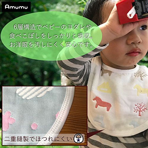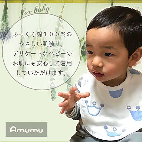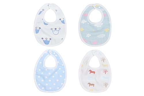 Amumu スタイ 男の子 4枚セット 食事 よだれかけ ビブ 2段階サイズ調整可能 6層ガーゼ 綿100% ベビー (ブルー)