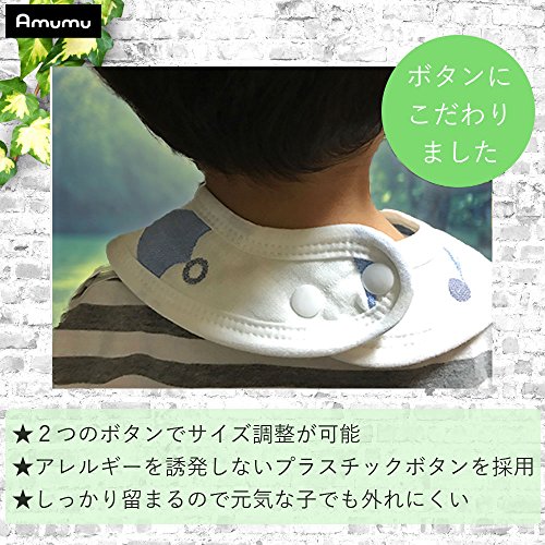 - ほつれにくく、破れにくい二重縫製です。本体素材は綿100%で、ボタン部分はアレルギーの誘発を抑える為にプラスチックを採用。2段階のサイズ調整が可能です。