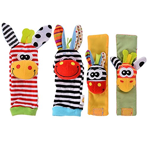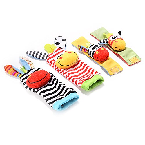 amyove 4 x最新Wrist Rattles手Foots Findersベビー幼児ソフトおもちゃDevelopmental by LanLan