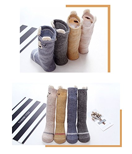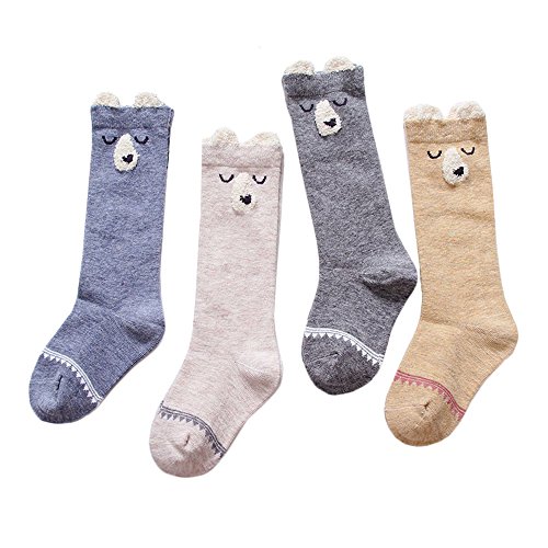 Anbaby 4足セット 女の子 ハイソックス 靴下 可愛い 動物柄 女の子 くつした (L/1-2歳, カブス)