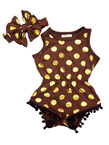 Anbaby ベビー女の子のブロンジングポルカドットロンパース+ヘッドバンド Coffee XL