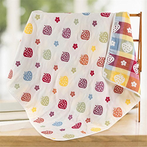 ベビーケット オーガニックコットン 毛布 タオル100%綿 通気 6重ガーゼケット 苺柄 B