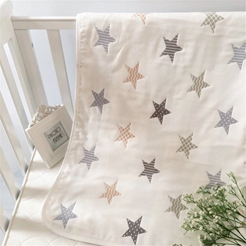ベビーケット オーガニックコットン 毛布 タオル100%綿 通気 6重ガーゼケット 星柄 グレー