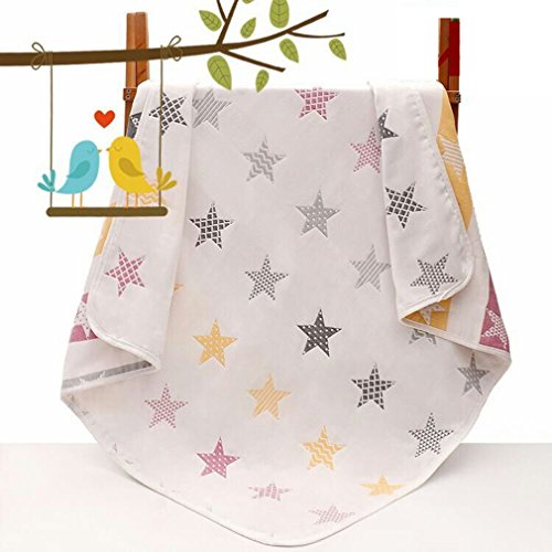 ベビーケット オーガニックコットン 毛布 タオル100%綿 通気 6重ガーゼケット 星柄 ピンク