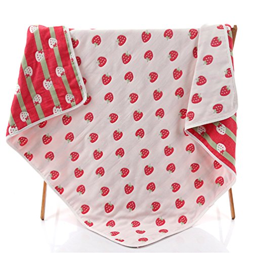 ベビーケット オーガニックコットン 毛布 タオル100%綿 通気 6重ガーゼケット 苺柄 A