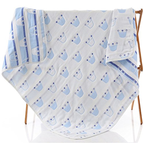 ベビーブランケット 大判 ひざ掛け 6重ガーゼケット ベビーケット オーガニックコットン 肌にやさしい 子供 毛布 湯上りタオル ふわふわガーゼタオル ブルー Crown