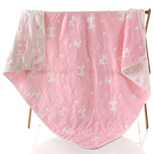 ベビーブランケット 大判 ひざ掛け 6重ガーゼケット ベビーケット オーガニックコットン 肌にやさしい 子供 毛布 湯上りタオル ふわふわガーゼタオル ピンク Elephant