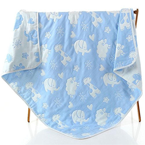 ベビーブランケット 大判 ひざ掛け 6重ガーゼケット ベビーケット オーガニックコットン 肌にやさしい 子供 毛布 湯上りタオル ふわふわガーゼタオル ブルー Animal