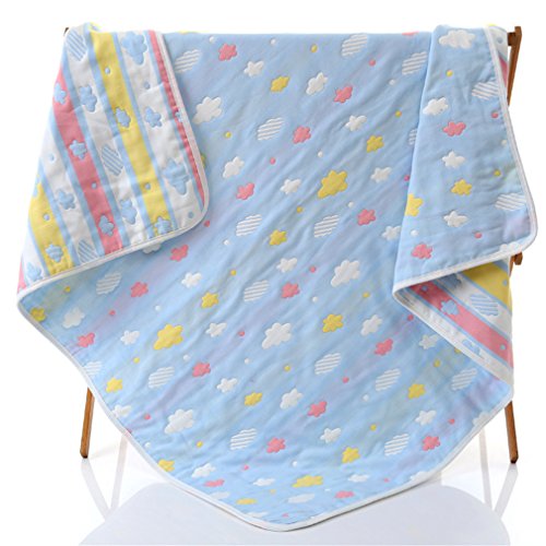 ベビーブランケット 大判 ひざ掛け 6重ガーゼケット ベビーケット オーガニックコットン 肌にやさしい 子供 毛布 湯上りタオル ふわふわガーゼタオル ブルー Colorful Clouds