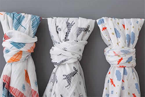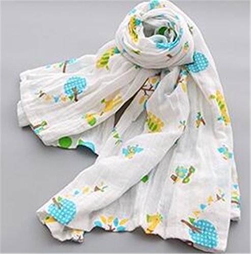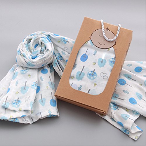 2重モスリンコットン おくるみ ブランケット 膝掛け 授乳ケープ プレイマット ブルーの木