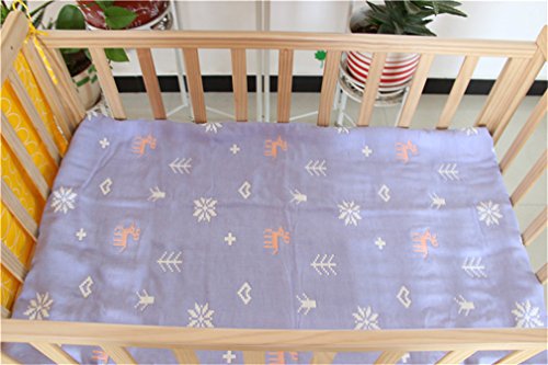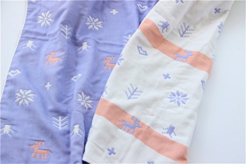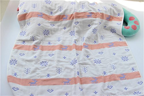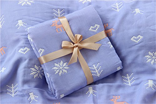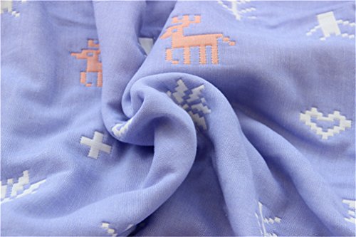 ベビーケット通気 6重ガーゼケッ 湯上りタオル ひざ掛け ふわふわガーゼタオル 110×110cm ブルー ヘラジカ
