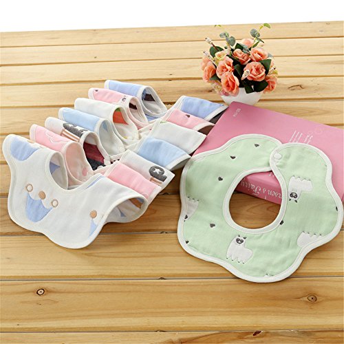 ベビー ビブ 6重 よだれかけ コットン100% 柔らかい 360度回転可 よだれかけ スナップビブ 4枚セット