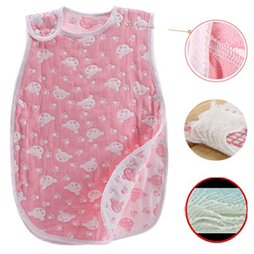 8重 ガーゼスリーパー ガーゼおくるみ パジャマ 寝袋 オーガニックコットン 40*70 cm ピンク くまさん