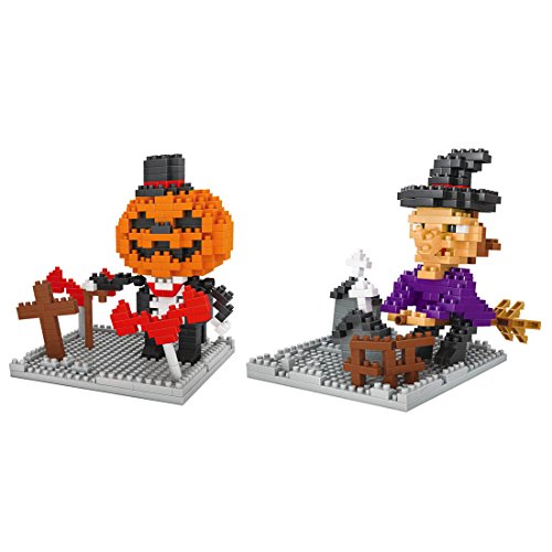 Andux Space ミニ ブロック 積み木 ABS 軽量 ハロウィーン 2組セット KLJM-02 (巫女+カボチャ)