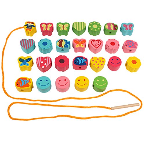 - 図柄は両面があり、ひもを通していくことで、手先の器用さを育て、色、形状、数の概念も学べます。また、指先を使うことで右脳を刺激。思考力、創造力をスクスク伸ばします。。